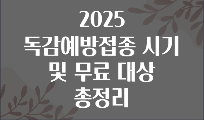 #독감예방접종 #2025독감 #무료접종 #독감시기 #건강관리 #임산부독감 #노인독감 #어린이독감 #질병관리청 #보건소 #면역력 #건강정보 #예방접종주의사항 #겨울준비 #코로나독감동시예방